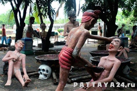 Тайцы этот комплекс зовут Храмом ада и рая. Он расположен в городке Банг Саен. От Паттайи до него ведет изначально неблагоустроенная дорога.