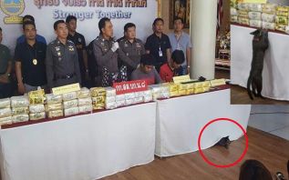 В последние недели полиция Таиланда осуществила ряд крупных захватов наркотиков. Однако, судя по фото с недавней пресс-конференции, у полицейских появился пушистый помощник в борьбе с наркомафией.