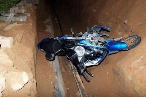 Мотоцикл упал в трехметровую траншею возле строящегося тоннеля