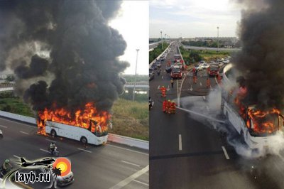 пожар автобусаБАНГКОК:- Автобус, направляющийся в Аэропорт Суварнабхуми, загорелся утром на шоссе в аэропорт, пассажиры успели выйти из автобуса как раз вовремя.