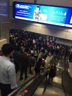 Сегодня в 8 утра по прибытии на станцию Суттисан сотни пассажиров в панике выбежали из MRT. Их напугал громкий взрыв и дым из-под одного из вагонов. Инцидент произошел в поезде, который ездит из Банг Сы в Хуа Лампонг.