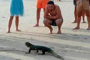 Варан устроил туристам фотосессию на пляже Ката