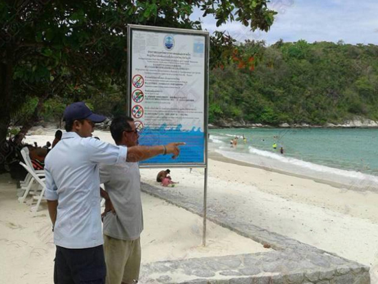 Вчера Сучарт Раттанаренгси, из Департамента морских и прибрежных ресурсов Таиланда, посетил пляж, чтобы увидеть новые знаки и посмотреть как туристы подчиняются им.