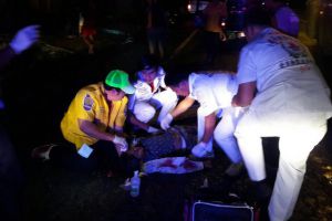 Полиция получила сообщение об аварии на дороге, что ведет от памятника Героиням к Лагуне, около 23:00 вторника, 12 июля. Прибывший по вызову наряд обнаружил, что лежит на проезжей части мотоцикл Yamaha и двух пострадавших: 21-летнего водителя Писита Тхонгкарна и его 24-летнюю пассажирку Анонгвади Бунсоп. Оба были оперативно доставлены в больницу Thalang Hospital, однако спасти жизнь женщины врачам не удалось. Писит же как и раньше находится под наблюдением медиков.